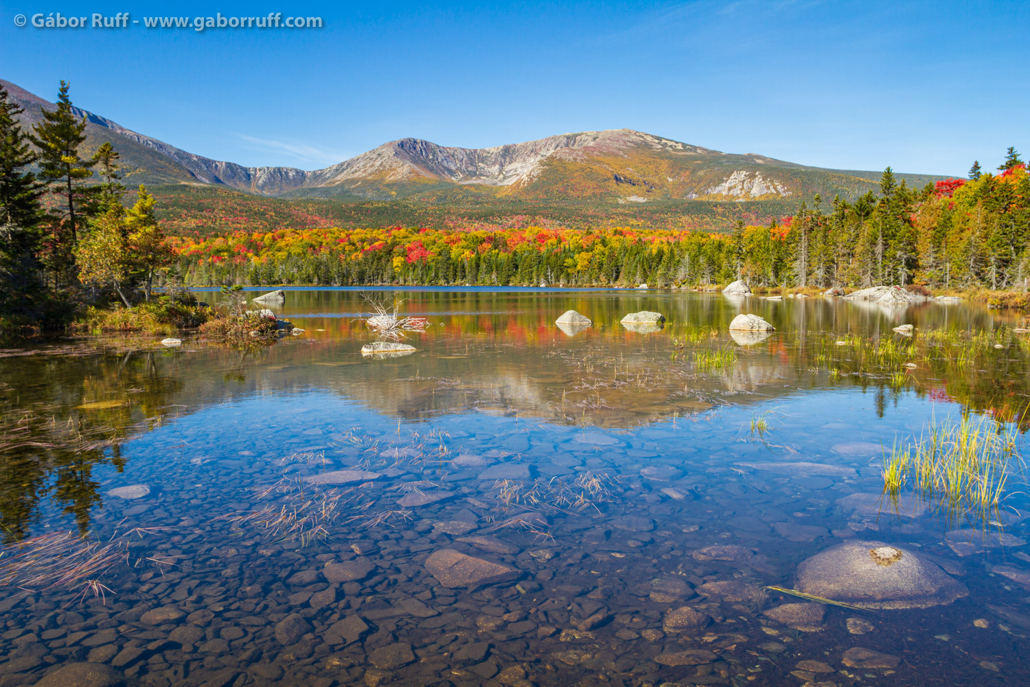 This year is very unique for everyone with the COVID-19 all around. I didn’t go out to do any nature photography since spring, however, as the fall arrived, I couldn’t resist to go for some leafpeeping. I love fall colors and New England is especially beautiful this time of year, so Gabi and I decided to visit Maine at the end of September. We camped near Baxter State Park (map) and went to the park to check out the beautiful Mount Katahdin, the highest mountain in Maine. Its highest peak is 5,269 feet (1,606 m). The mountain was named Katahdin by Penobscot Indians, which means The Greatest Mountain. Governor Percival Baxter bought the area around the peak in 1929 and donated it to the state to be kept forever wild. The state park was established in 1931 and was named in his honor. We only spent one full day in the park, but enjoyed it very much. It is definitely one of the most beautiful places on the Eastern part of the USA.