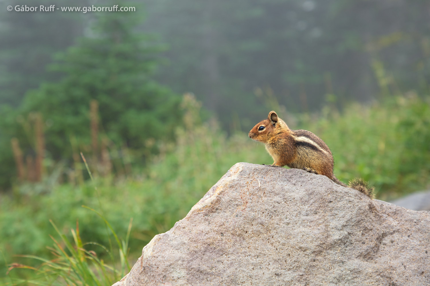 The real stars of the park, however, were the golden-mantled ground squirrels (Callospermophilus saturatus). These chipmunk-like rodents were everywhere we went and proved to be excellent photography subjects, especially once you understand their behavior. Constantly on the move in search of seeds, fungi, and green vegetation, they often pause to eat on rocks or fallen logs where they can stay alert for potential predators. By observing their habits and favorite spots, I was able to position myself nearby and simply wait for them to come into frame—allowing me to capture many intimate photos. I’ve used this technique for years when photographing chipmunks and squirrels, and it continues to deliver great results.