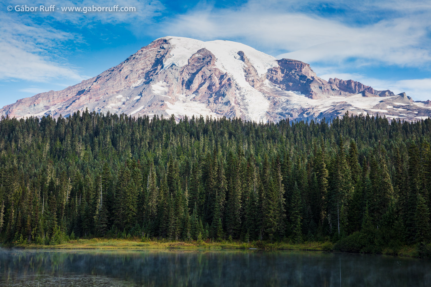 Although the thick fog never fully cleared that day, we still thoroughly enjoyed our time in the park. The next morning, as we were preparing to leave, we noticed clear skies from the hotel’s dining room. We quickly decided to make one last stop at Reflection Lake. There, at last, we were rewarded with an unobstructed view of Mount Rainier, and I was also able to capture some postcard-perfect shots of this spectacular mountain. In the end, our short visit to Mount Rainier National Park turned out to be a memorable and rewarding experience.